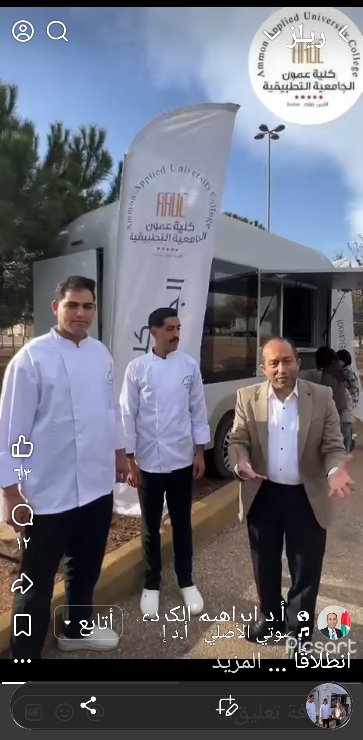 جامعات_ انطلاقًا من التوجيهات الملكية السامية، تفتتح كلية عمون الجامعية التطبيقية في هذا اليوم المبارك من عيد الفطر السعيد مشروع عربات الطعام (Food Truck) لتمكين الشباب وتعزيز ثقافة التشغيل الذاتي في المشاريع الصغيرة والمتناهية الصغر.