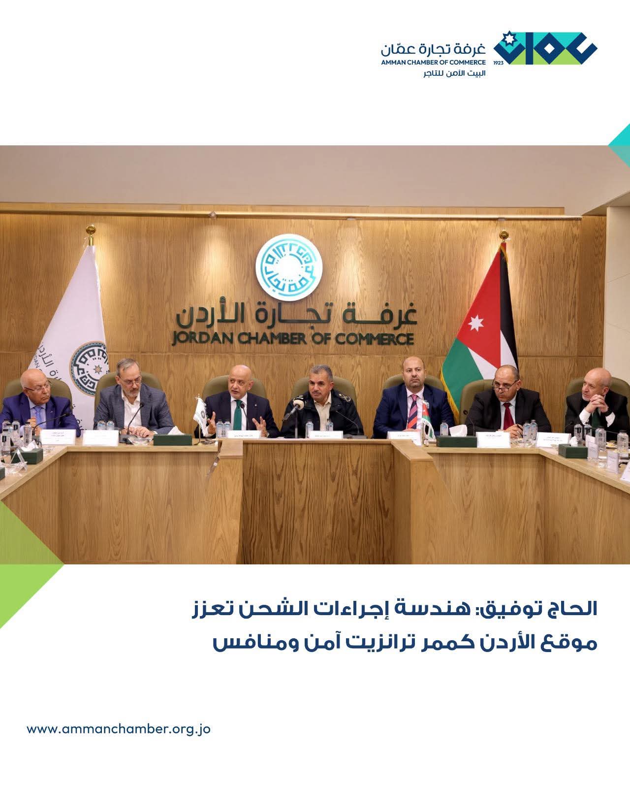 ناقشت غرفة تجارة الأردن واقع تجارة الترانزيت في ظل المتغيرات الجيوسياسية الراهنة، بمشاركة واسعة من ممثلي القطاعين العام والخاص والجهات ذات العلاقة.
