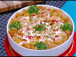 ٦. في طبق التقديم نضع الخبز ثم الأرز ثم اللبن ونزين بالدجاج.