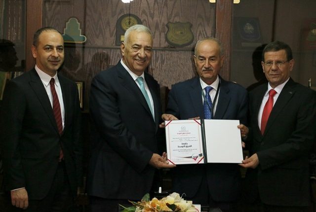 عمان – سلم رئيس هيئة اعتماد مؤسسات التعليم العالي وضمان جودتها الأستاذ الدكتور بشير الزعبي اليوم جامعة الشرق الأوسط شهادة ضمان جودة المؤسسات التعليمية مع كامل امتيازاتها وحقوقها بمستواها الذهبي بعد تحقيقها معايير ضمان الجودة.