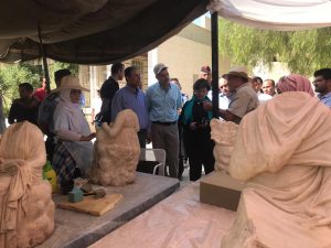حيث استمعت وزيرة السياحة والآثار لينا عناب الى شرح مفصل من مدير اثار جرش زياد غنيمات والدكتور توماس ليبون مديرالحفرية من جامعة تورس الفرنسيه عن الأكتشافات الجديدة في الموسم الحالي 2018م والجدير ذكره بأنه تم الكشف خلال موسمي التنقيب الأثري لعامي 2016/2017 عن العديد من التماثيل والتي تمثل الالهه زيوس ( الهة الحرب) و افرودايت ( الهة الحب والجمال) ورأس جوليا ( الهة الشمس) بالأضافة الى ثلاثة تماثيل تمثل الهة المسارح وأجزاء مختلفة لتماثيل مجهولة الهوية.