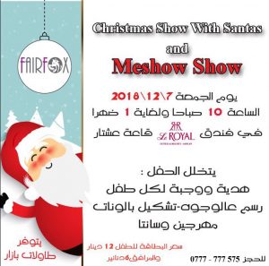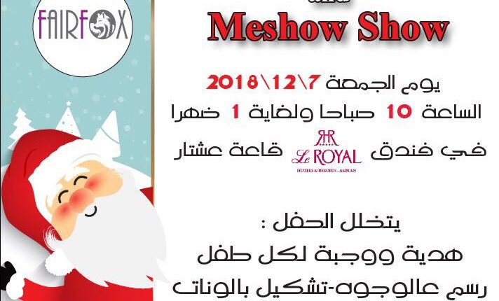 ارشيف الجريدة Meshow Show with Santasفندق الرويال بتاريخ 12/7 اخر تحديث يناير 29, 2019 12٬851 مشاركة حفلة الاطفال بمناسبة عيد الميلاد ستكون في فندق الرويال بتاريخ 12/7 الساعة ١٠ صباحا حفلة مميزة وهدايا قيمة Meshow Show with Santas وجبة وهدية لكل طفل مقدمة من سانتا سعر البطاقة للطفل 12 دنانير وللمرافق 6 دنانير يتوفر طاولات بازا 12٬851 مشاركة