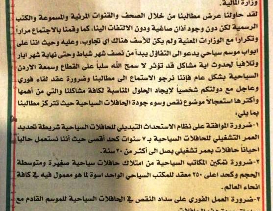 وكلاء السياحة والسفر يطالبون دولة الرئيس برسالة مفتوحة للتدخل بوضع حلول مشكلة النقل السياحي