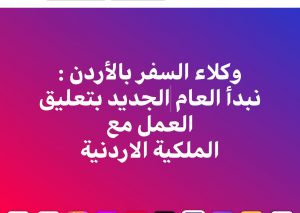 وكلاء السياحة والسفر يعلقون اعمالهم مع الملكية لمدة ثلاثة ايام اعتبارا من اليوم -تعميمم255/2018