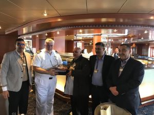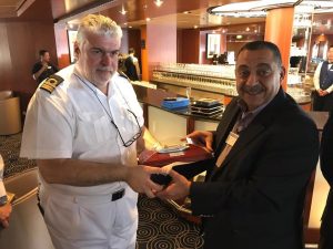 وكان في استقبال المجلس قائد الباخرة (كوستا تيو ريفيرا-costa new riviera)والذي اعرب بدوره عن شكره لغرفة تجارة العقبة ممثلة السيد خماش طه ياسين وزملائه ، كما اثنى على مسيرة العمل والتواصل وجودة الخدمات ورقي التعامل مع تجار العقبة، وكانت غرفة تجارة العقبة ممثلة بالسيد خماش طه ياسين وكابتن الباخرة قد تبادلوا الدروع التذكارية بهذه المناسبة.